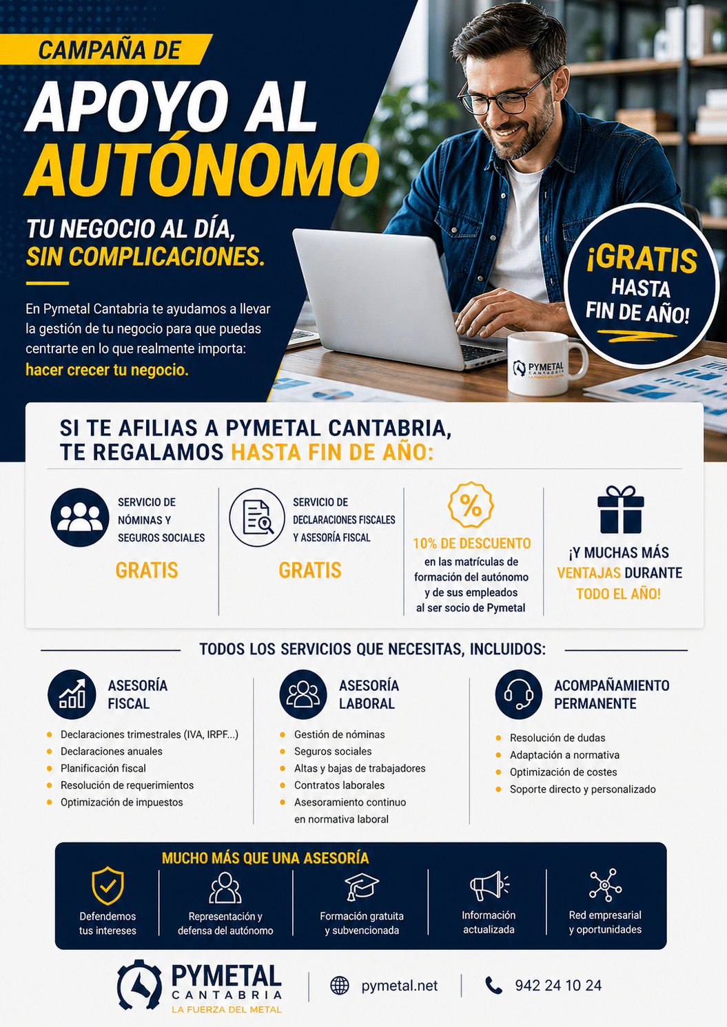 En un momento clave para el tejido empresarial, PYMETAL Cantabria pone en marcha una campaña extraordinaria de apoyo al autónomo, con un objetivo claro: